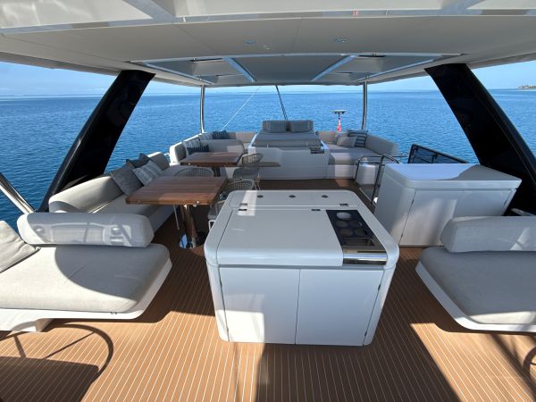 - Diğer FLYBRIDGE İÇİN TAM ŞEFFAF (CLEAR) KAPAMA. FLYBRIDGE CAMLARI İÇİN GÜNEŞLİKLER. FLYBRIDGE YAN VE ARKA DİKEY GÜNEŞLİKLERİ. • TAM KIÇ KOKPİT ŞEFFAF (CLEAR) KAPAMA, KOKPİT İÇİN YAN VE ARKA DİKEY GÜNEŞLİKLER. • FLYBRIDGE DÜMEN KONSOLLARI VE VİNÇLER İÇİN TAM KILIF SETİ, FLYBRIDGE VE KOKPİT MASALARI İÇİN KILIF SETİ, TÜM DIŞ MEKAN MİNDERLERİ İÇİN KOMPLE KILIF SETİ. • BAŞ GÜVERTE GÖLGELİK TENTESİ. ÖN KOKPİT GÖLGE TENTESİ, KIÇ YAN KANAT TENTESİ.Miele BEYAZ EŞYA PAKETİ – MİKRODALGA FIRIN, FIRIN, 4 GÖZLÜ İNDÜKSİYON OCAK, BULAŞIK MAKİNESİ, ÇAMAŞIR/KURUTMA KOMBO MAKİNESİ VE SANCAK BAŞ PİK WORKSHOP ALANINDA AYRI ÇAMAŞIR MAKİNESİ VE AYRI KURUTMA MAKİNESİ. • ÇİFT PASLANMAZ ÇELİK EVYE, ATIK ÖĞÜTÜCÜ (INCINERATOR) VE ANINDA SICAK SU MUSLUĞU. • MUTFAK SİNTİNE BÖLÜMÜNDE 105 ŞİŞE KAPASİTELİ, KLİMALI ŞARAPLIK